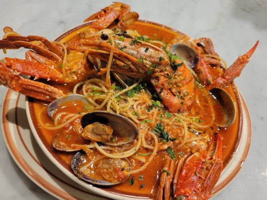 宮崎の魚介を活かし、青島のサンセットをイメージした豪快トマトクリームのパスタ