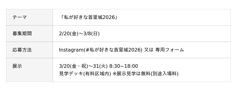 ・首里城フォトコンテスト2026首里城公園内で撮影した写真を大募集!受賞作品は公園内に展示します♪
