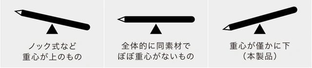 固定用アダプタがリフィルをカッチリと固定し、ペン先のブレを極限まで排除。また、ペン中央部で支えて僅かにペン先の方が重くなるよう計算された絶妙な重量バランスにより、思った通りの文字が書ける安定した書き心地を実現しています。