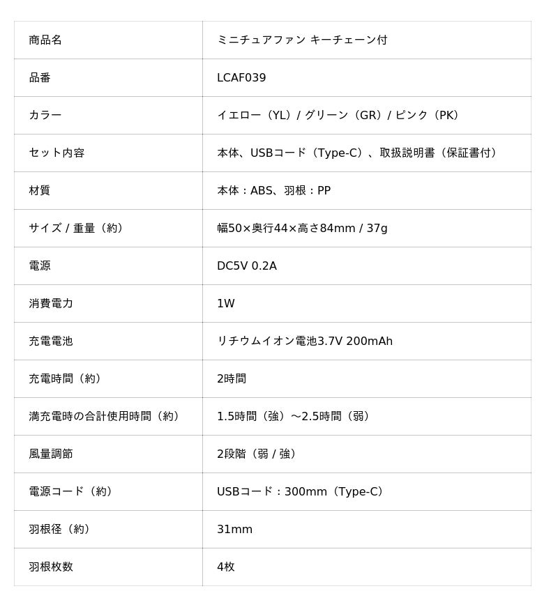 「ミニチュアファン キーチェーン付」LCAF039