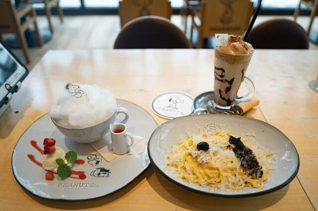 削りたてのチーズでスヌーピーを表現したカルボナーラや、スヌーピーときょうだいたちのティラミスなどがいただけます。