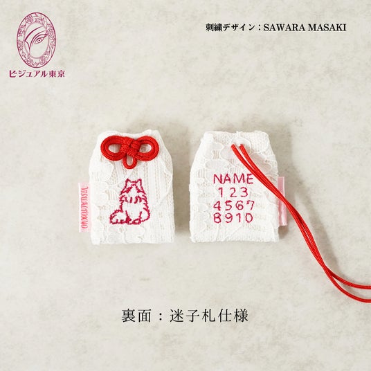 ミニサイズのお守りには、迷子札オプションをご用意。裏面に苗字と電話番号を直接刺繍します。