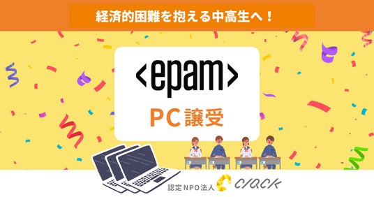 認定NPO法人CLACK(以下:CLACK)は、EPAM Systems Japan合同会社より、リユースPC24台をご寄贈いただきました。