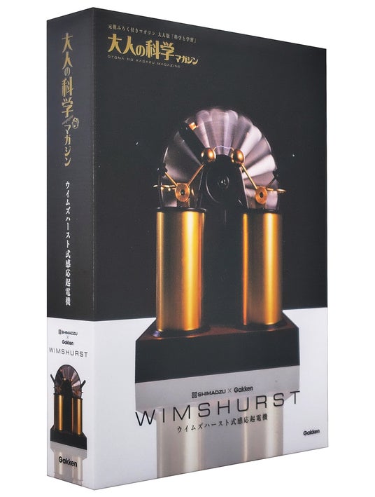 その後完成した「ウイムズハースト式感応起電機」は、島津製作所の150周年記念商品として、島津理化から2025年に販売されました。今回、ショップ学研+で限定販売されるのは、これと同じ“島津製作所×Gakkenコラボキット”に、編集部オリジナルのブックレットを付けた別バージョンです。