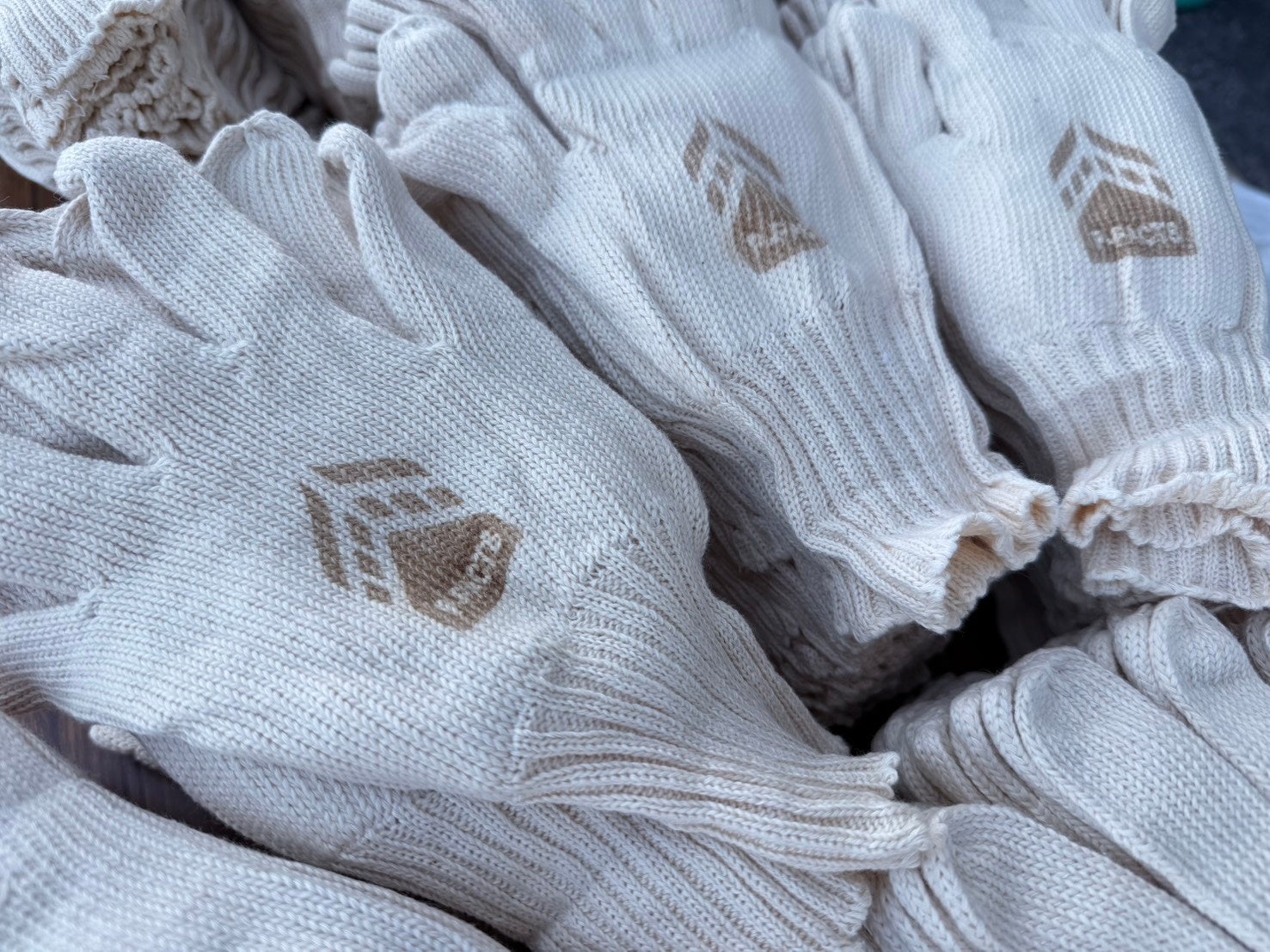 今回寄付させていただいた軍手は、植物由来の『土に還る素材』で作られています。村田製作所グループのピエクレックス社が推進する、繊維を堆肥化して自然に還す仕組み『P-FACTS』の認定製品です。