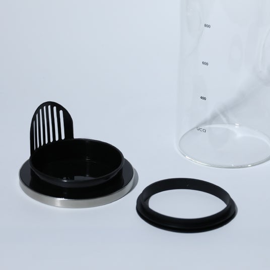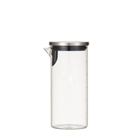 広口で洗いやすく、熱湯OK。麦茶ポットやフレーバーウォーターづくりに使えるフィルター付きで、冷蔵庫収納をすっきり整える。
