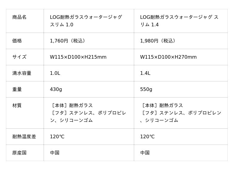「LOG 耐熱ガラスウォータージャグ スリム」を2026年2月に発売しました。