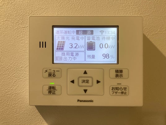 黒石モデルハウスのエネルギーモニター(太陽光発電と蓄電池の稼働状況)