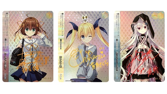 新規描き下ろしイラストが3点、クリエイター2名と出演キャスト8名の箔押しサインカードが合計15種類収録されます!