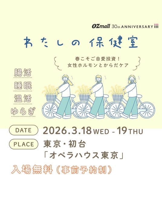 オズモール30周年「OZmall わたしの保健室 2026春」イベント情報日々がんばる女性が気軽に通える“保健室”のような存在をめざす「OZmall わたしの保健室 2026春」。
