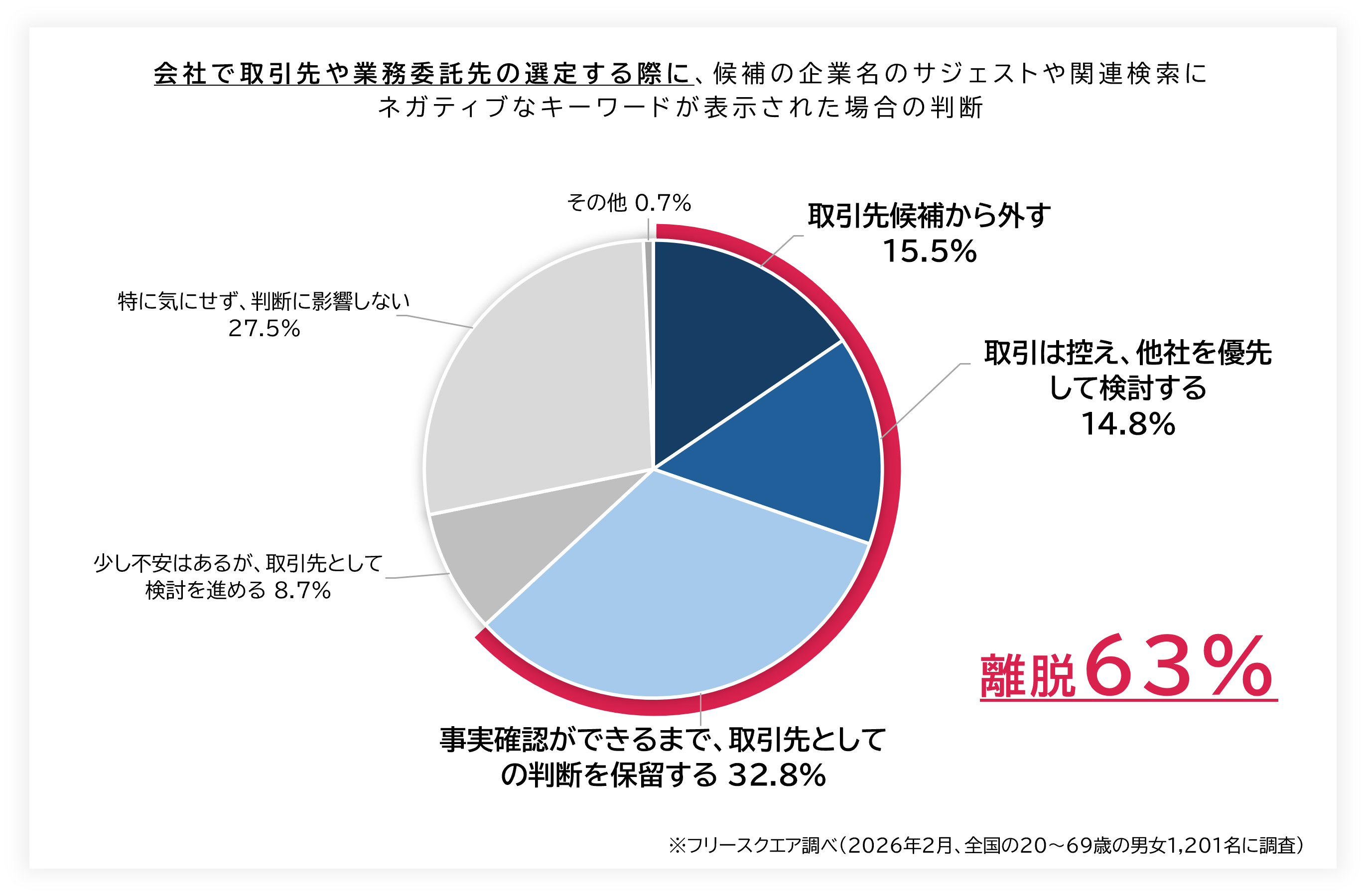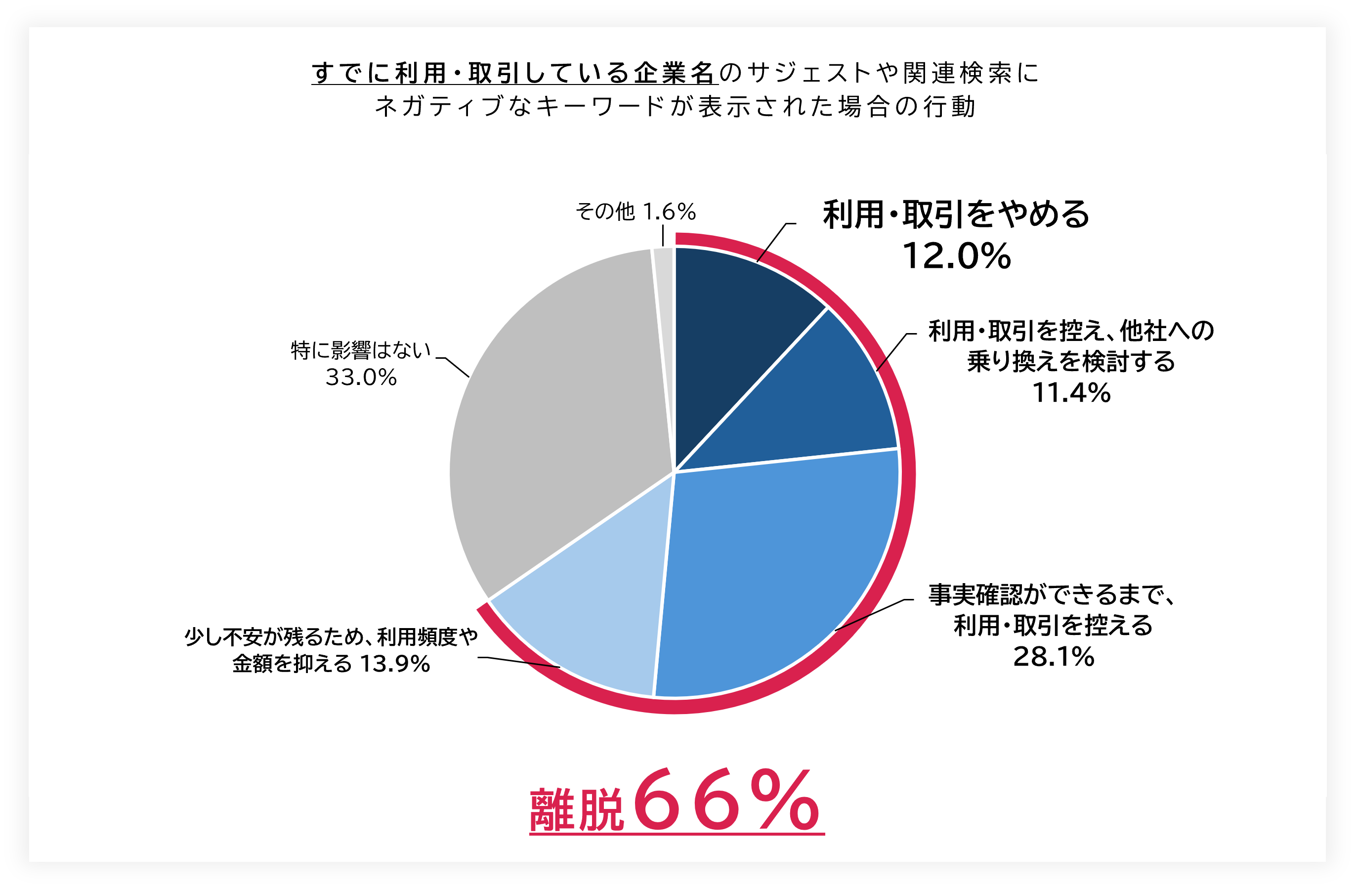 検索結果に表示されるネガティブ情報は、売上や採用、取引、既存顧客との関係など、企業活動のさまざまな場面に影響する可能性があることが明らかになりました。