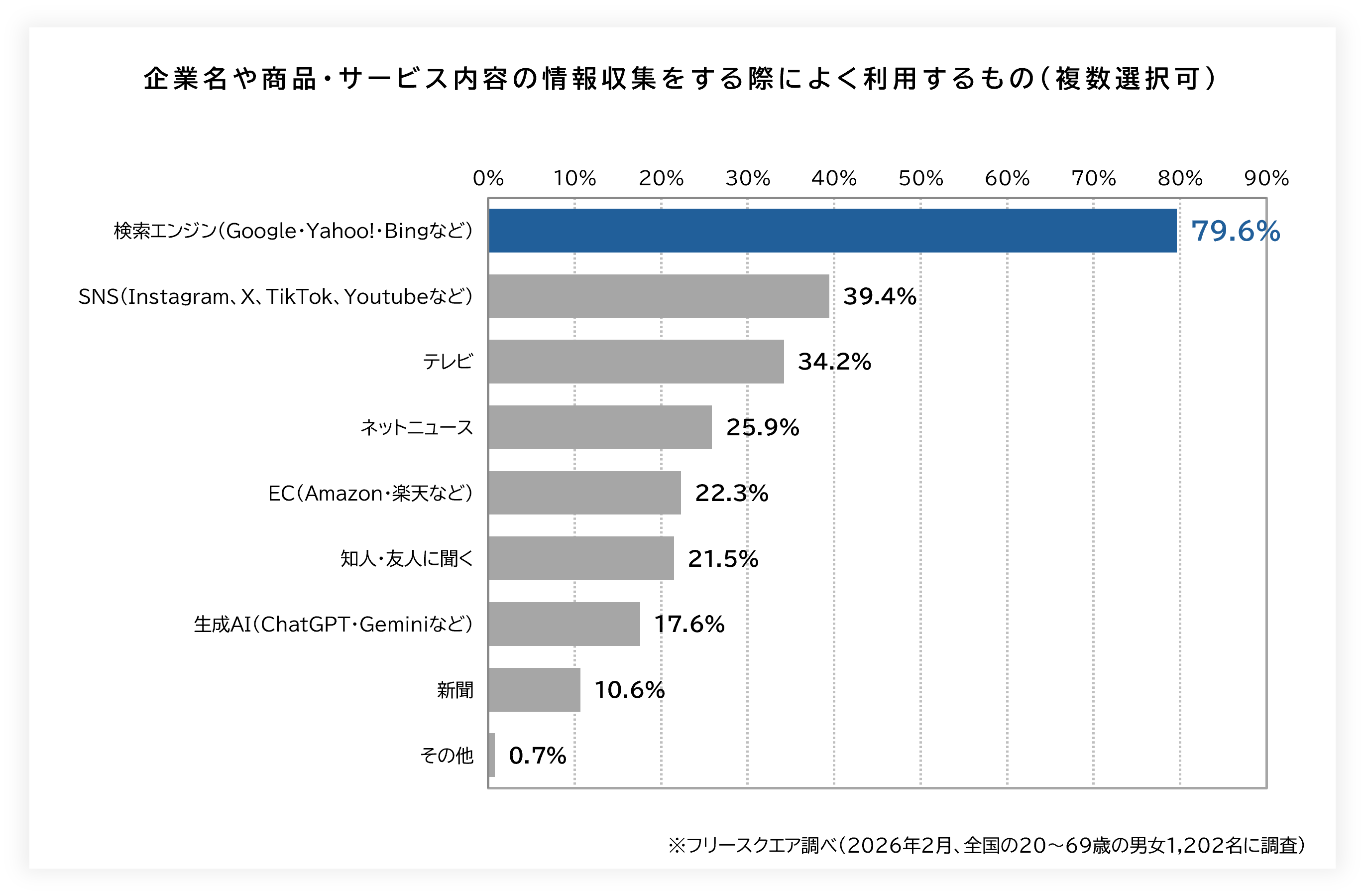 現時点では、依然として商品やサービス・企業を調べる上で「検索エンジン」が中心であることが明らかになりました。