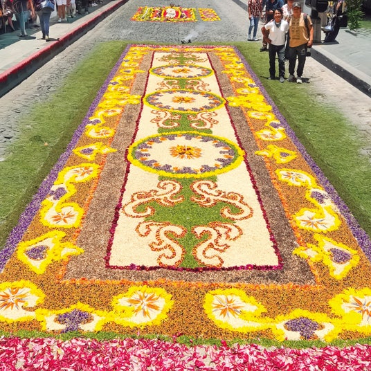 グアテマラの花絵。この上をパレードが通るので、一瞬の美