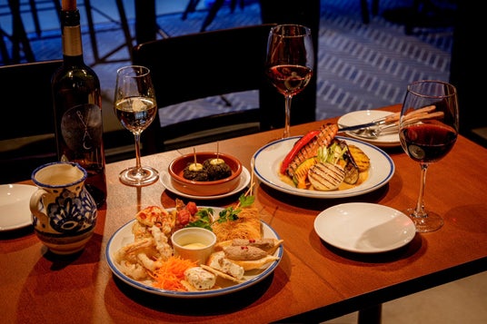 ディナータイムは、タパスの盛り合わせやパエリア、生ハムなどの本格スペインバルメニューをご提供。スペインワインを中心に、料理とのペアリングを楽しめるラインアップを揃えています。サンセバスチャンをイメージした落ち着いた空間で、スタジアム観戦後の一杯や、ゆったりとした大人の時間をお過ごしいただけます。
