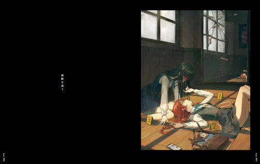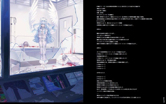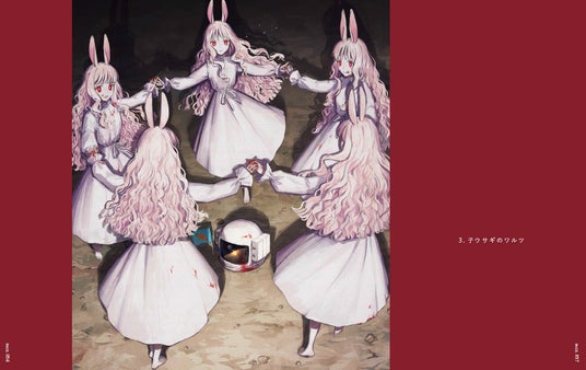 迫力満点の一枚絵、不穏な雰囲気の中で鬱展開していく連作イラスト、さらに、絵+文章で構成される短編物語など、様々な表現方法で「恐怖」を味わうことができるのが本作品の特徴です。