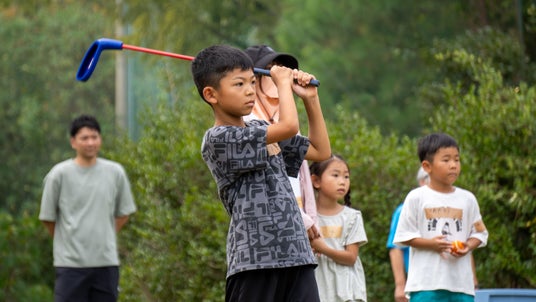 子どもでも扱いやすいクラブとボールを使用し、初心者でも手軽にゴルフに親しめるプログラムです 。広大なコースで「打つ」快感を体験します。