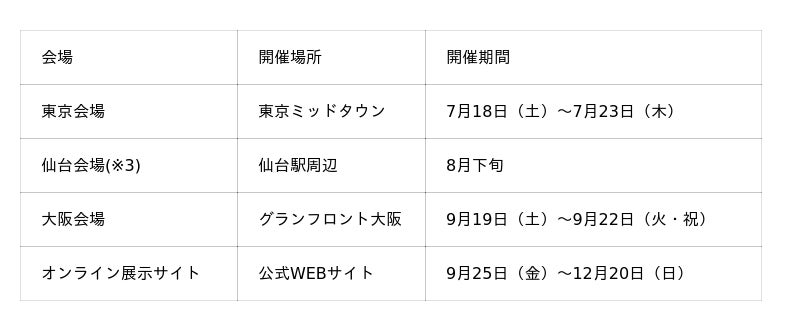 ※3仙台会場の開催場所、開催期間は5月上旬頃に公式WEBサイトでお知らせします。