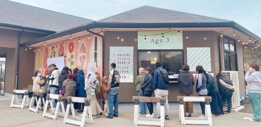 2023年には、新感覚スイーツ『揚げサンド』の専門ブランド「Age.3(アゲサン)」を立ち上げ、銀座一丁目に1号店をオープン。外サクッ・中モチッの独自食感と低糖質ホイップが話題を呼び、TV・Web・SNSに多数取り上げられる。最大2時間待ちの行列店として話題を集めた。