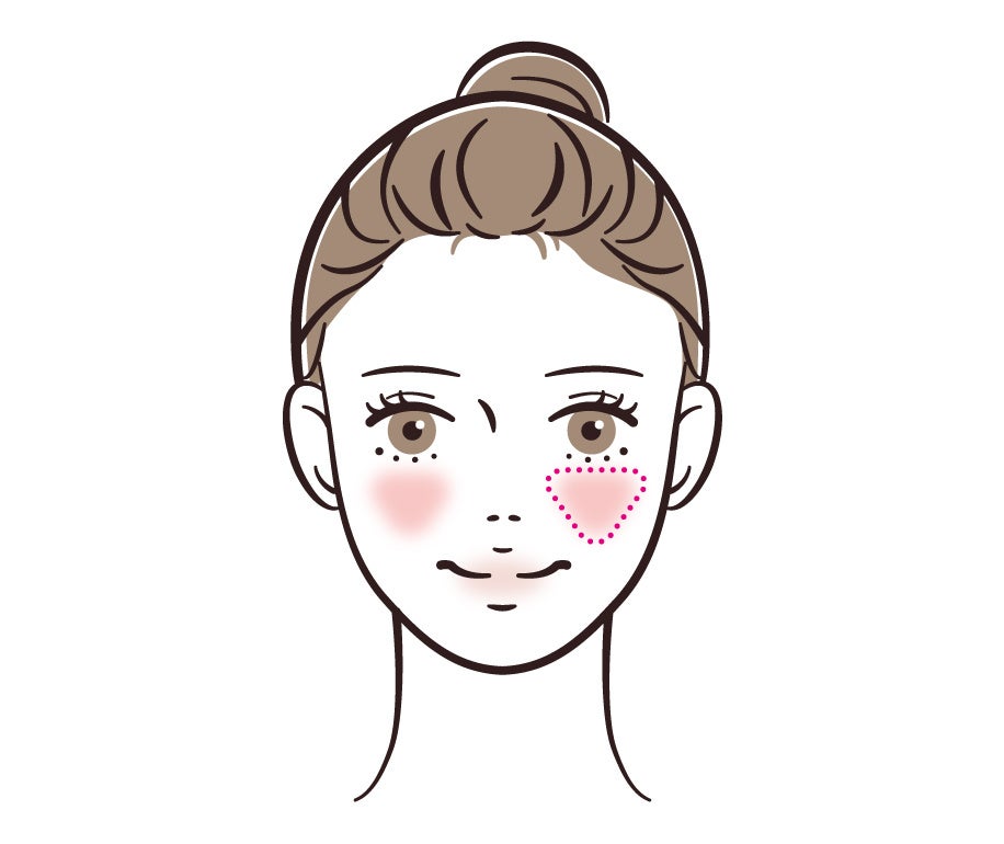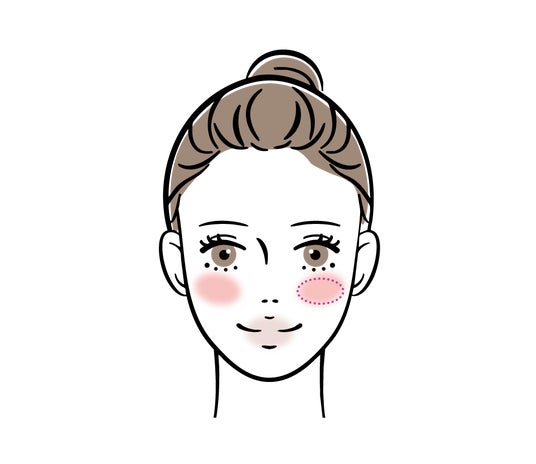 横顔までチークを伸ばすと顔が大きく見えるので要注意。