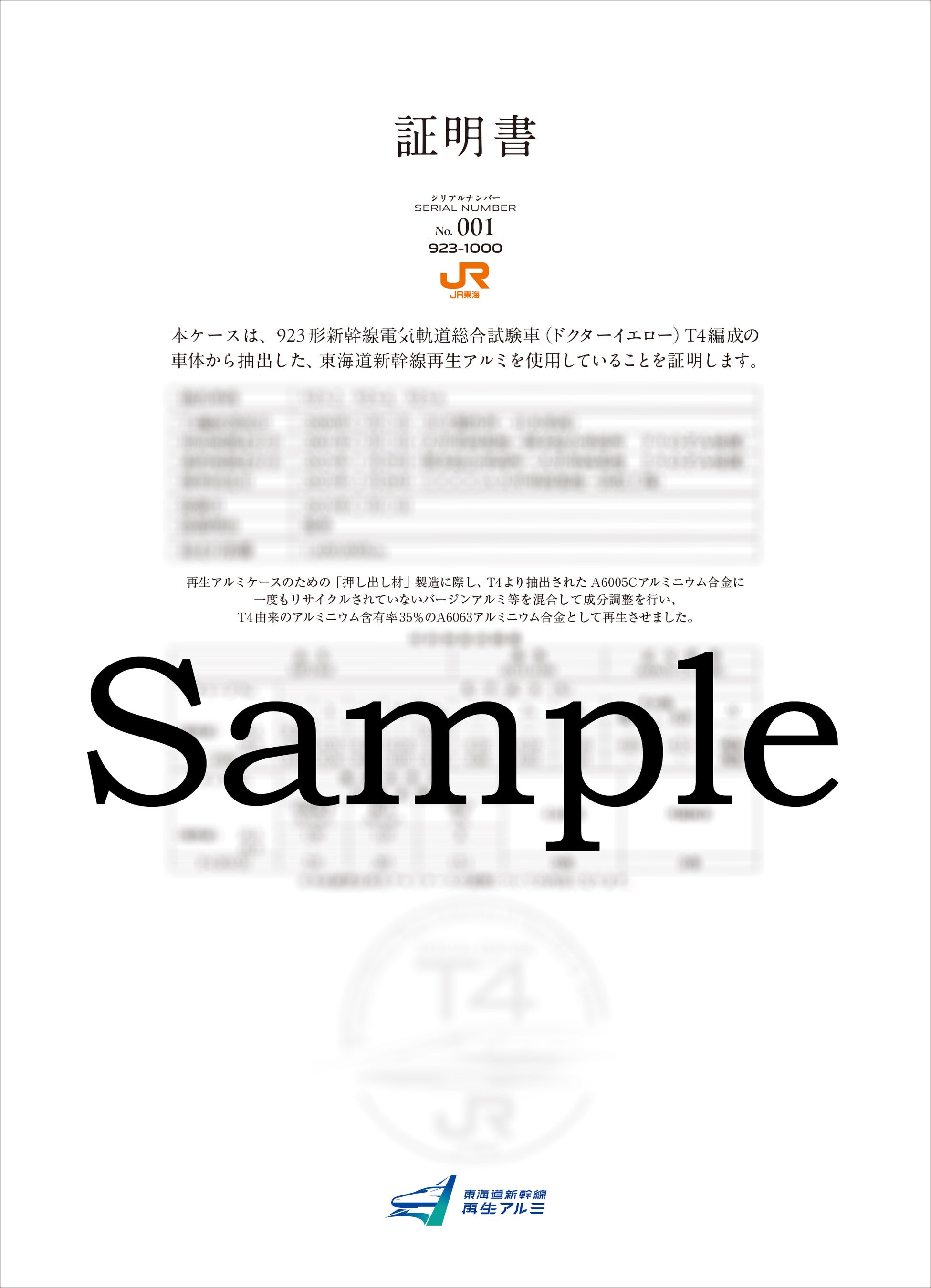 - ドクターイエローT4編成の再生アルミを使用していることを証明