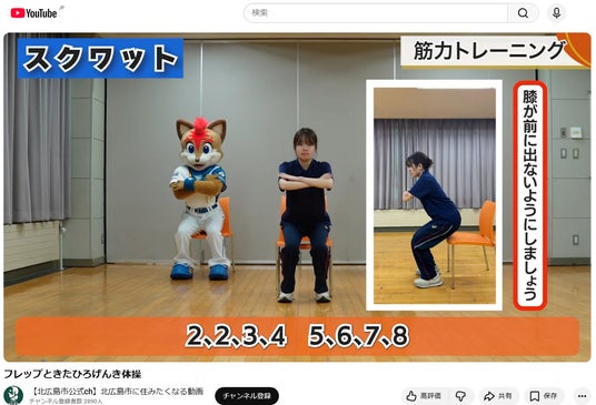 今回のリニューアルでは、北広島市と(株)ファイターズ スポーツ&エンターテイメントとの連携事業の一環として、北海道日本ハムファイターズ公式マスコットであるフレップが動画に登場しました。フレップの親しみやすいキャラクターが体操を楽しく盛り上げ、モチベーションアップにも繋がっています。