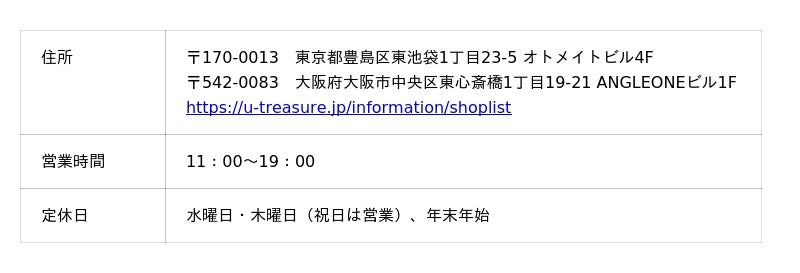 お客様のお問い合わせ窓口(ユートレジャーオンラインショップ)◆お問い合わせフォーム>> https://u-treasure.jp/contact