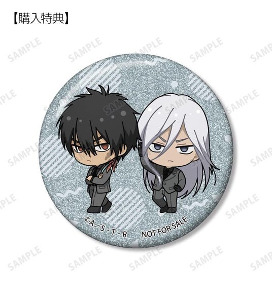 当商品を1BOX、または単品にて1BOX相当数ご注文ごとに、予約購入特典として「XANXUS(10年後)&スペルビ・スクアーロ(10年後) ちびキャラ スーツの歩みver. グリッター缶バッジ AMNIBUS&アニメイト限定特典」を付属いたします。