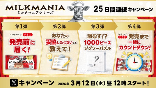 ■SNSキャンペーン 新商品「ミルクマニアいちご」をひと足早く味わえる“先行体験”企画や、完成までの道のりが過酷とウワサの「ミルクマニアオリジナルジグソーパズル」が当たる、25日連続キャンペーンを開催!