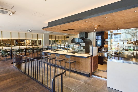 ベビーカーや三世代での来店にも対応できる広々とした空間に、心地よい風を感じるテラス席を備えた全143席。店内には、毎日打ち立てるパスタの工程を間近で体感できるガラス張りの製麺スペースを設置。ピザ窯を囲むライブカウンターでは、生地が膨らみ、香ばしく焼き上がる瞬間を五感で楽しめます。“食べる”だけでなく、“体験する”レストランとして、街に新しい賑わいを創出します。