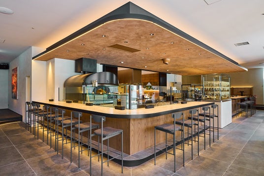 ピザ窯を囲むライブカウンター