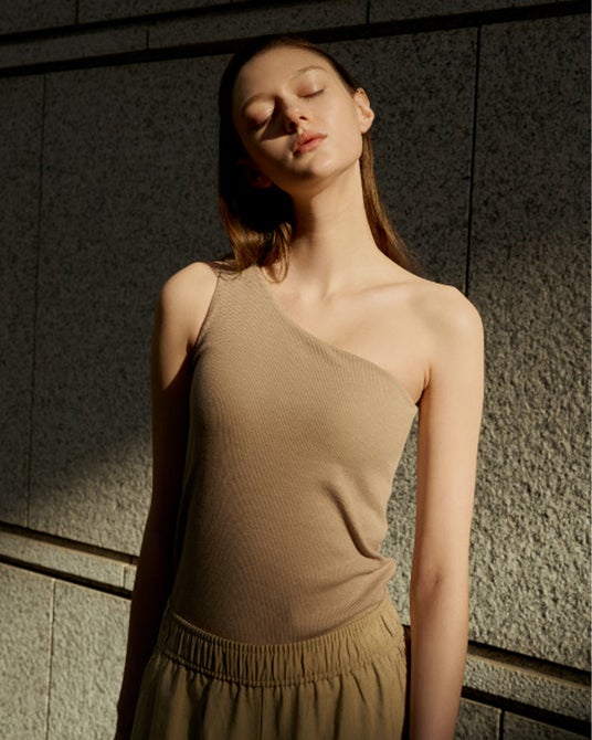 カップ イン アシンメトリー タンクトップモードな雰囲気を放つアシンメトリーデザインが魅力。細身のストラップが抜け感をプラスし、胸元はしっかりフィット。ハリのある綿混リブ素材は肌当たりが良く、どの角度から見ても洗練された印象に。肩紐は取り外し可能な2WAY仕様。