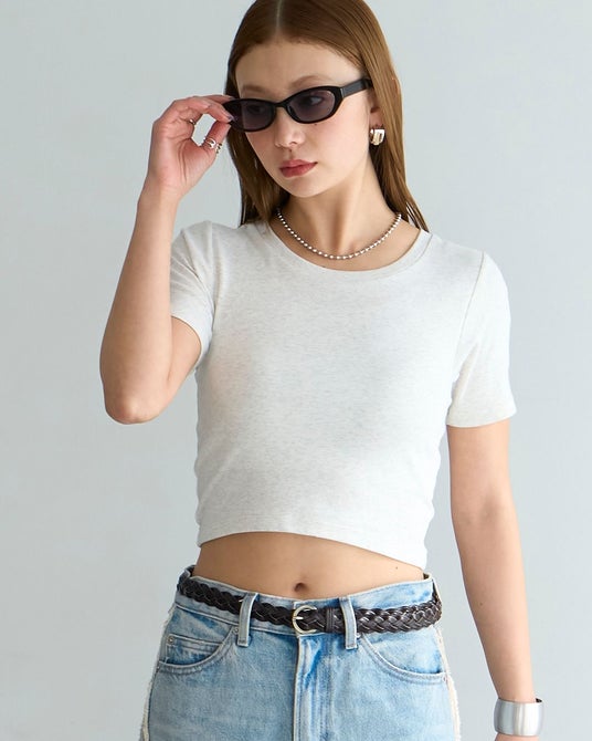 カップ イン クロップド クルーネックTコーデに取り入れやすいベーシックな一着。心地よくフィットする生地感と、短すぎないクロップド丈で、上半身をスマートに見せつつ露出も抑えた好バランスなデザイン。キレイめからカジュアルまで幅広いスタイルに馴染み、洗練された大人の着こなしを叶える。