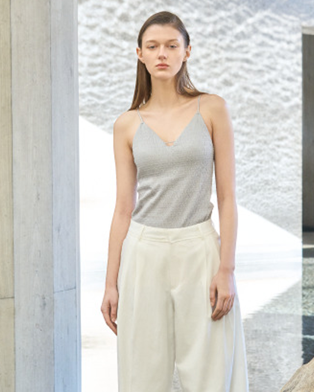カップ イン グリッター キャミソールさりげないトレンド感と主張しすぎないグリッターが魅力。取り入れやすいベーシックな形で1枚でもレイヤードでも着回し可能。春・夏・秋のロングシーズン着用でき、肩紐は3wayで使えるため背中開きトップスやワンピと合わせても◯。