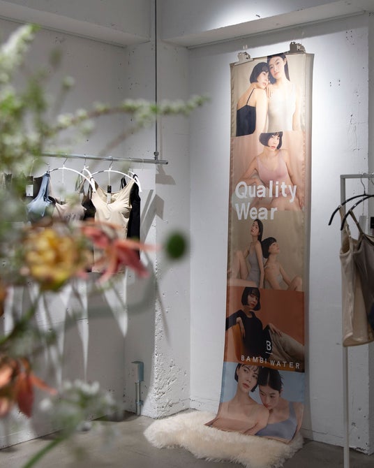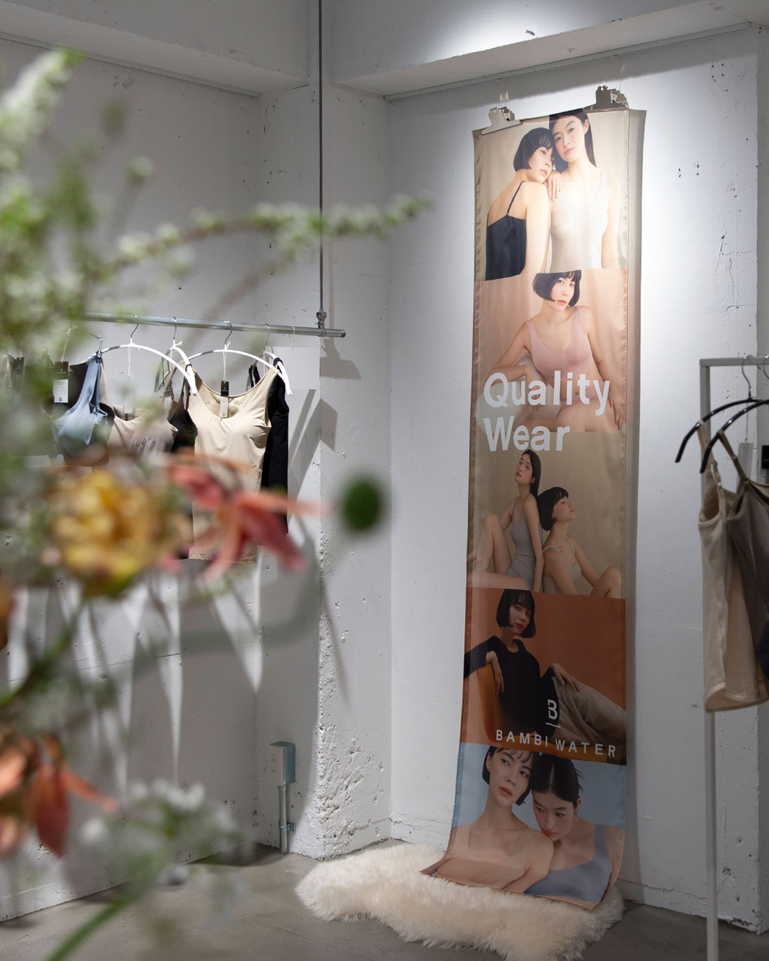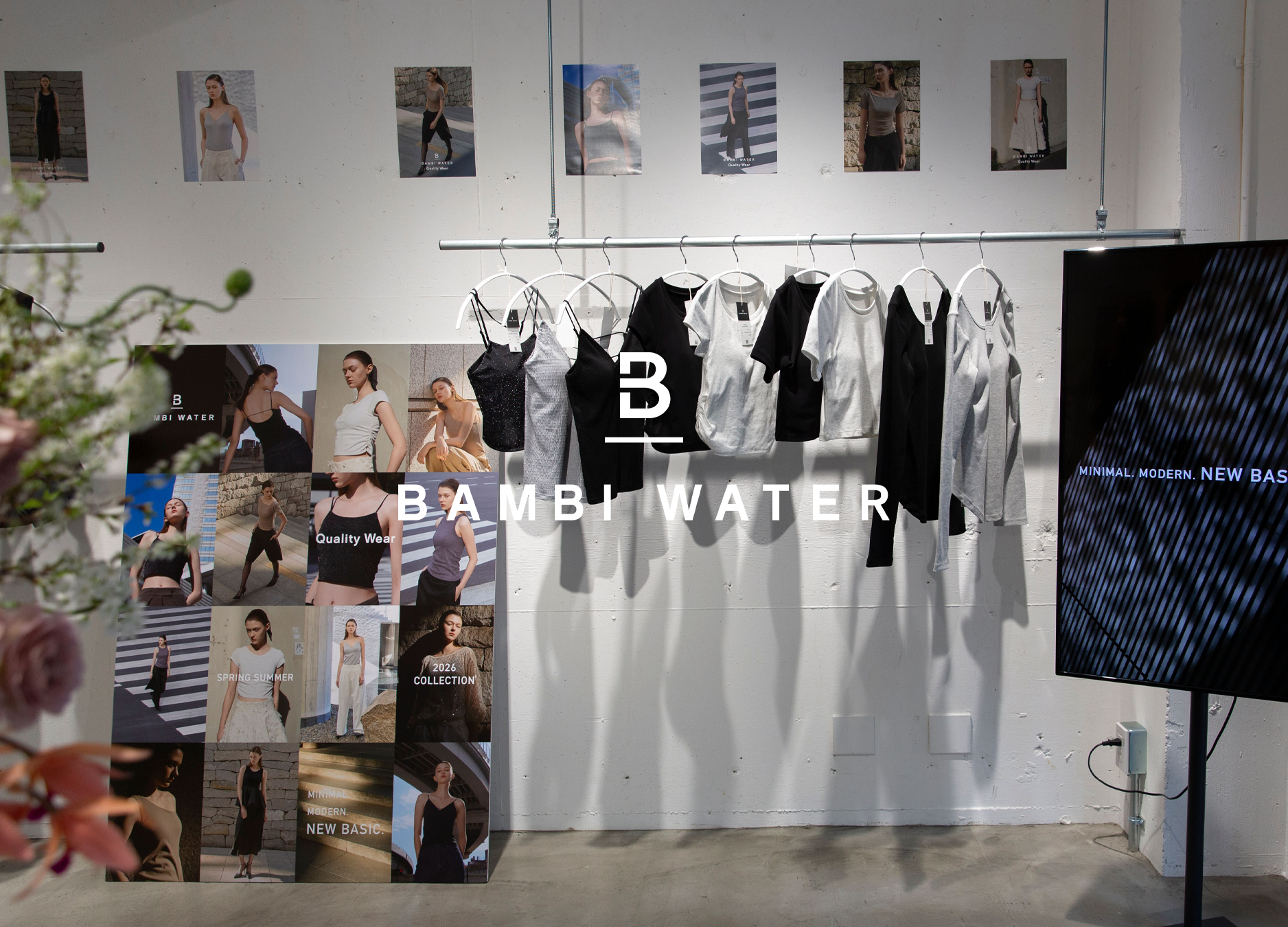 会場では、BAMBI WATERが掲げる新しい服の基準「Quality Wear」の思想とともに、全て「カップ付き」で構成された2026年春夏の最新コレクションを展示。