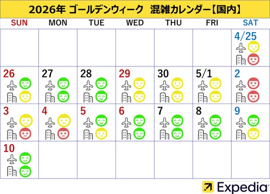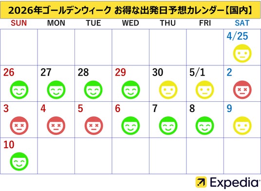 世界の大手総合旅行ブランドの一つであるエクスペディアは、2026年のゴールデンウィークにおける「【海外】穴場コスパ旅行先ランキング」「【国内】お得な『周遊旅』ランキング」に加え、「混雑日やお得な出発日予想」を発表します。