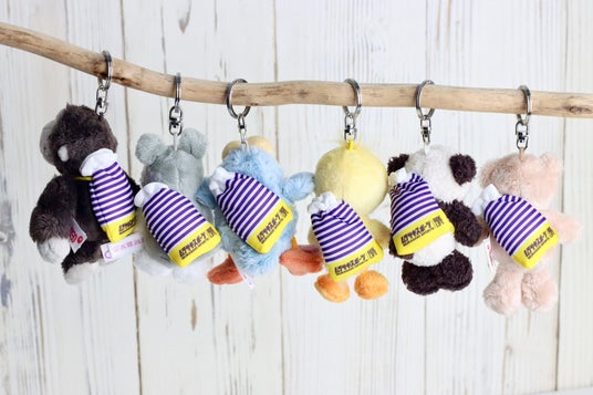 NICIの人気キャラクターでもあるシュナウザー、ハチドリ、ゴリラ、ヒヨコ、ラブベアブラウン、パンダの 6種類で作成、ムラサキスポーツといえば「これ」とイメージする方も多いボーダーをあしらった黄色と紫色のショッパーを斜め掛けしており、今まさに通勤・通学でBAGに付けている若い世代はもちろん、ムラサキスポーツのショッパーを普段使いしてきた大人世代にも懐かしさを感じさせるモデルとなっています。新生活を迎える春のこの時期、新しいバッグのお供にもおすすめの一品です。