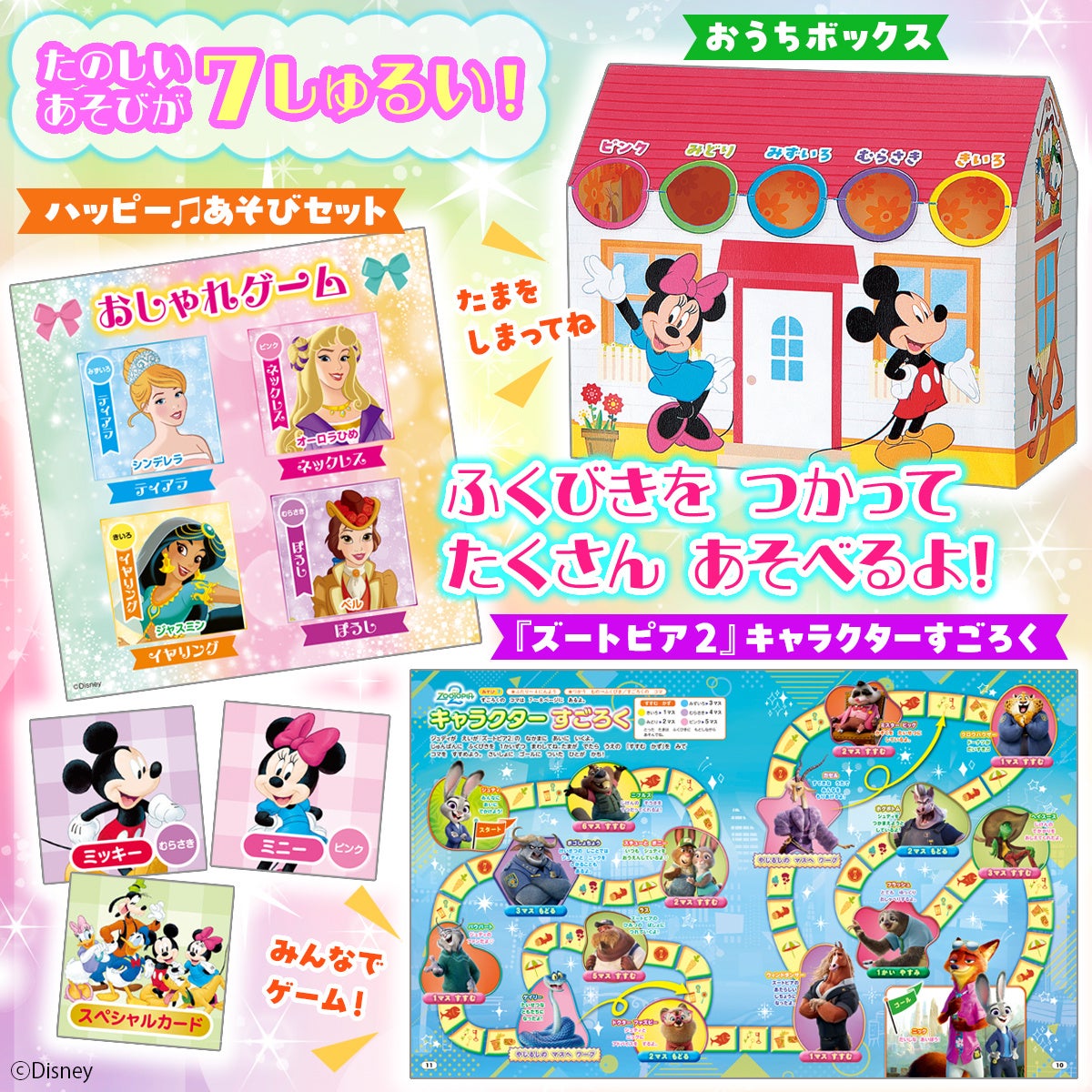 ディズニーキャラクターがいっぱいのあそびブック! ガラガラまわしてポンッ! とたまが出る「ふくびき」、『ズートピア2』『アナと雪の女王』など人気キャラクターのシールほか、盛りだくさんの付録で楽しめる!