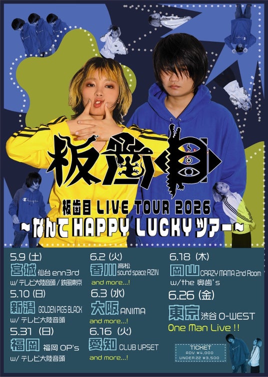 5月からは、2nd EPを引っ提げた「板歯目 LIVE TOUR 2026 ~なんてHAPPY LUCKYツアー~」の開催も決定。