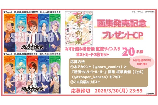 株式会社 学研ホールディングス(東京・品川/代表取締役社長:宮原博昭)のグループ会社、株式会社Gakken(東京・品川/代表取締役社長:南條達也)は、2026年3月12日より「『鎧伝サムライトルーパー』画集 桜華絢爛」刊行を記念して、コミックノーラのX(@nora_comics)にてプレゼントキャンペーンを実施中です。
