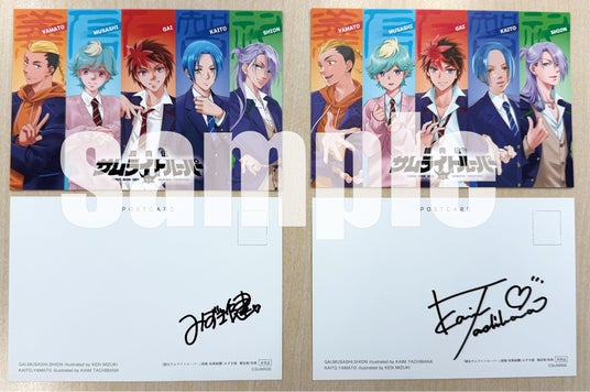 ▲ポストカード「TypeA」:新作『鎧真伝サムライトルーパー』のメインキャラたち。裏面にみずき健さんの直筆サイン入り!