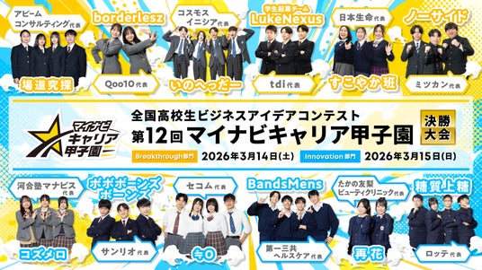 株式会社マイナビ(本社:東京都千代田区、代表取締役 社長執行役員:粟井俊介)は、全国の高校生を対象にしたビジネスアイデアコンテスト「第12回マイナビキャリア甲子園」の決勝大会を、2026年3月14日(土)、15日(日)に、大手町三井ホール(東京都千代田区)で開催します。
