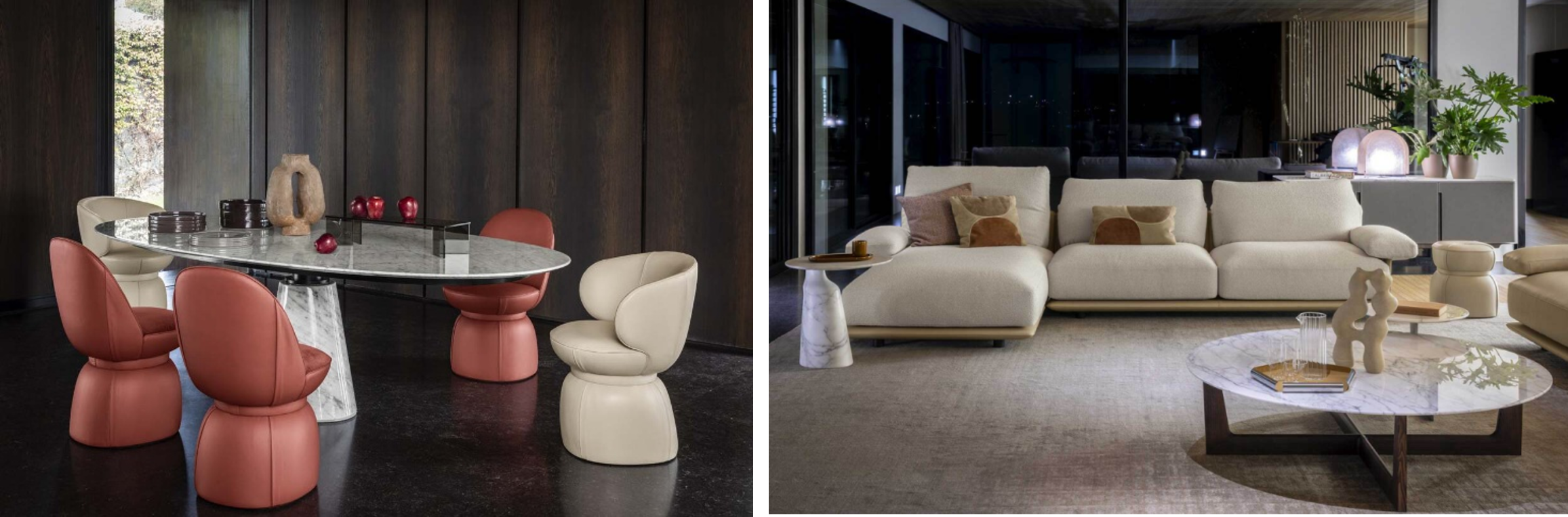 2025年ミラノ・デザイン・ウィークで発表され、大きな注目を集めた「The Five Seasons Collection(ファイブ・シーズンズ・コレクション)」は、春・夏・秋・冬の四季に加え、自然や感覚、調和のエッセンスが融合する“第五の季節”というコンセプトをもとに構想されたものです。家具、素材を通じて、ポルトローナ・フラウならではのクラフツマンシップと現代的なライフスタイル提案を体現しています。