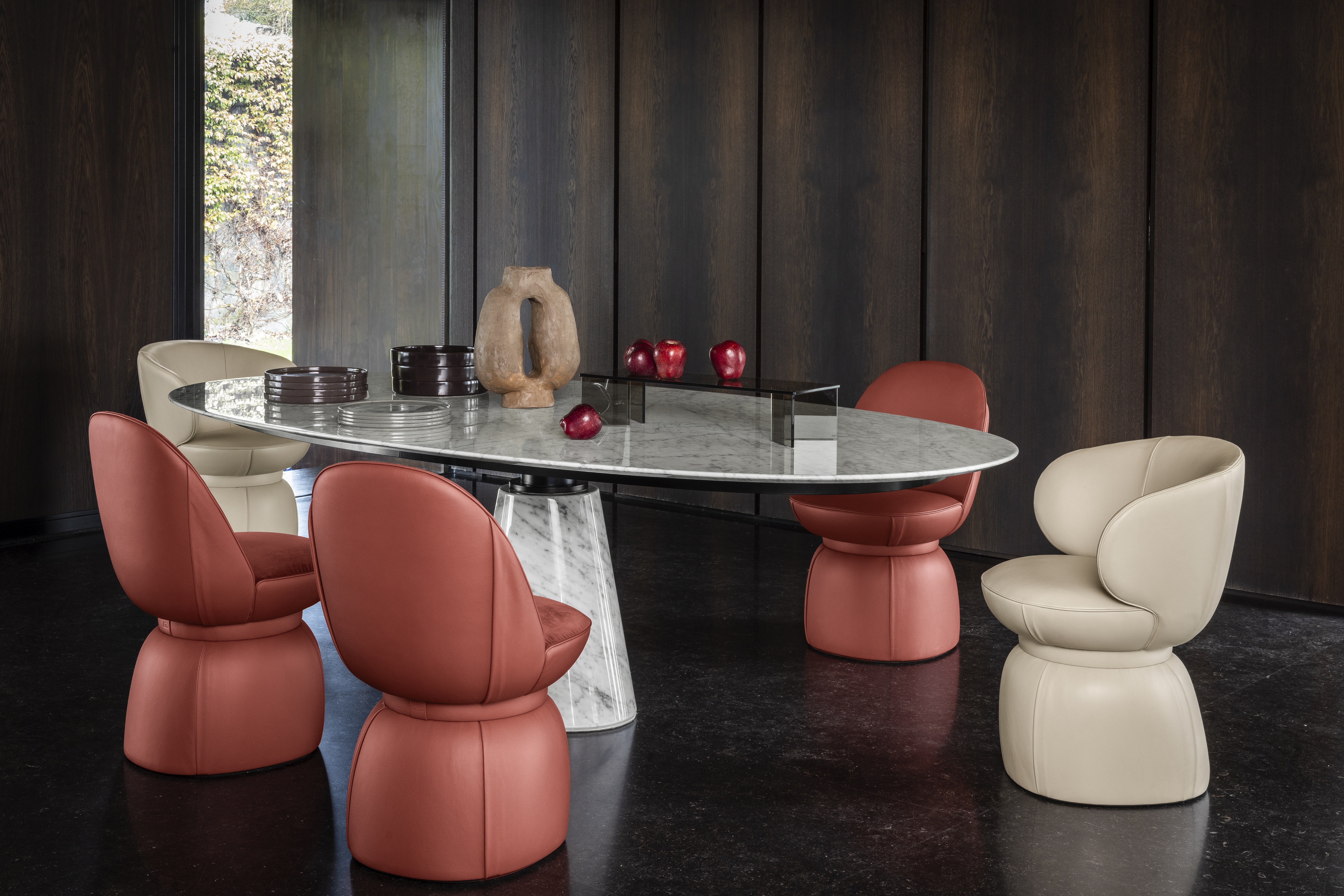 ポルトローナ・フラウの象徴的なテーブル「Mesa」シリーズに、楕円形の天板を特徴とする新モデル「Mesa Ellipse」が加わりました。1970年代にレッラ&マッシモ・ヴィネッリによってデザインされた「Mesa」の美学を受け継ぎながら、より柔らかなフォルムを取り入れたエレガントなデザインが特徴です。