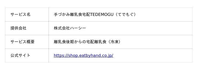 手づかみ離乳食宅配TEDEMOGU(てでもぐ)について