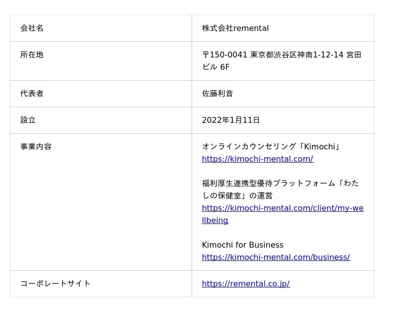 社名:株式会社remental代表者:代表取締役CEO 佐藤利音