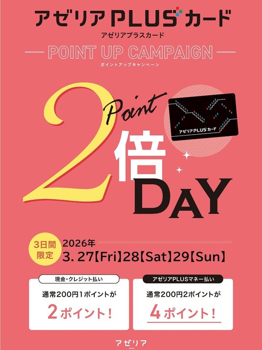 【アゼリアPLUSポイント付与期間】2026年3月13日(金)~2026年4月19日(日)