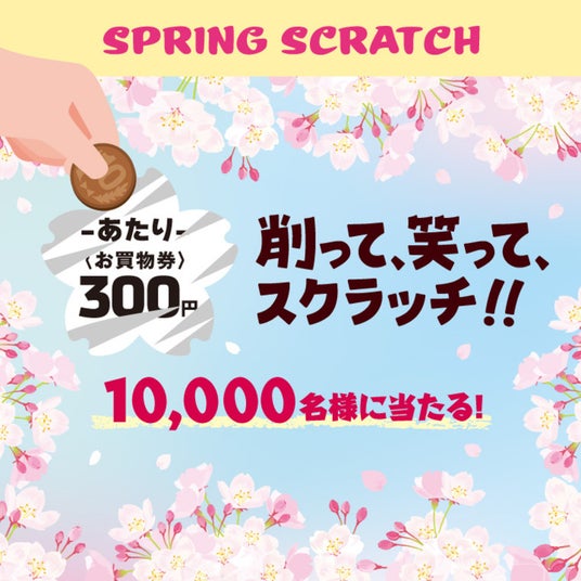 3月13日(金)より、アゼリア各店で1,000円(税込)以上お買い上げされた方にスクラッチカードを1枚進呈いたします。1会計につき1枚の進呈となります。スクラッチを削って<お買物券>が当たると、対象店舗でご利用いただけます。さらに、ハズレ券を5枚集めると、アゼリアPLUSポイント100ptプレゼントいたします。