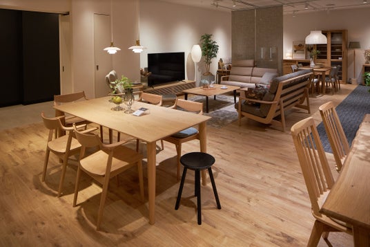 移転を機に、店内は単なる展示スペースの刷新にとどまらず、「家具を通して暮らしを提案する場」としてその役割を拡大いたします。実際の居住空間を模したレイアウトを導入し、来場者が木の質感や座り心地を体感しながら、自身の暮らしに重ね合わせて商品を選べる環境を整えています。