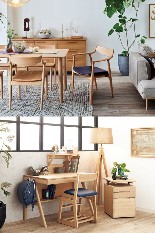 長年支持を集めてきたベーシックな家具シリーズは、無垢材の質感を生かした堅牢なつくりと、飽きのこない普遍的なデザインが特徴。世代を超えて使い継がれる品質の高さや、成長に寄り添う設計思想など、同社のものづくりの原点を体感できます。