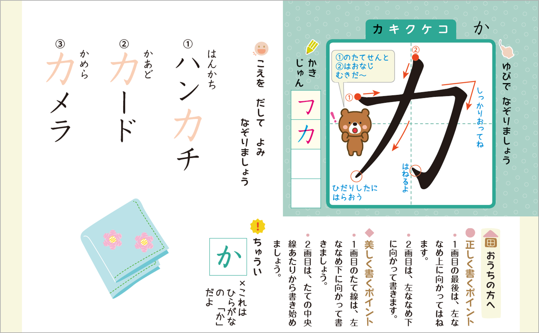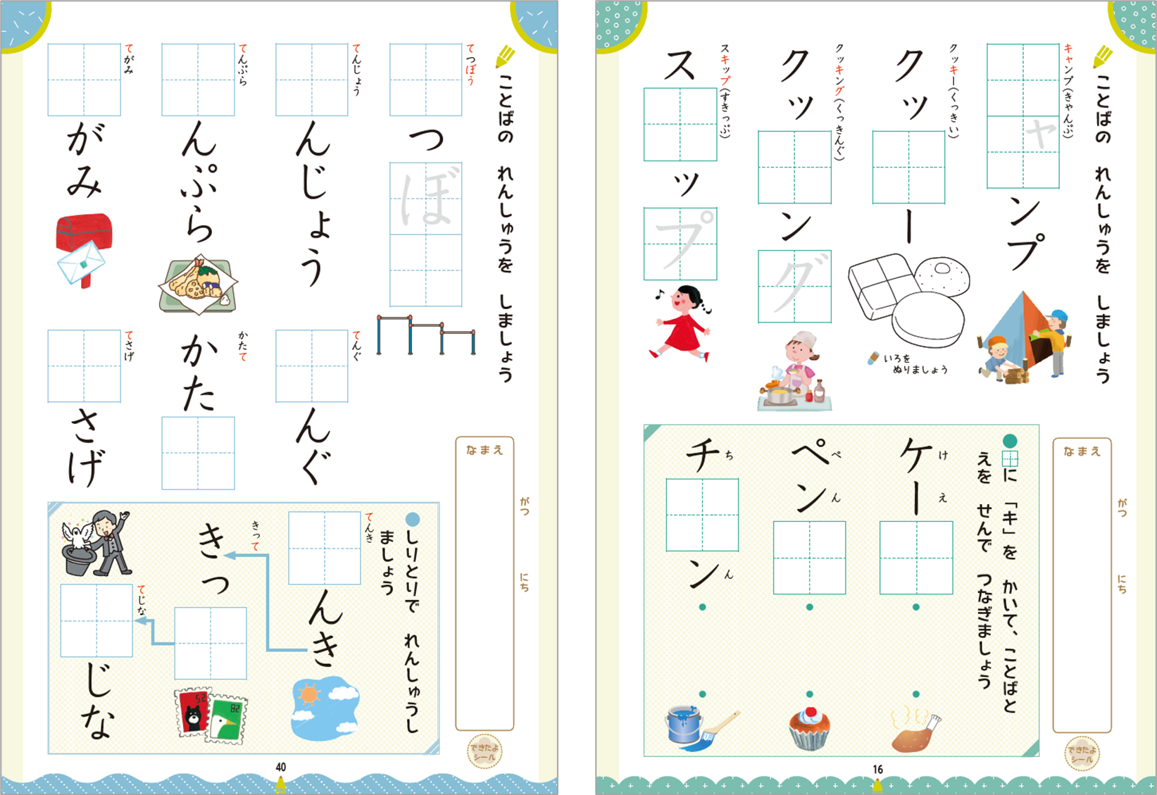 カタカナ練習ノート: https://www.zoshindo.co.jp/kindergarten/114/9784424114079.html